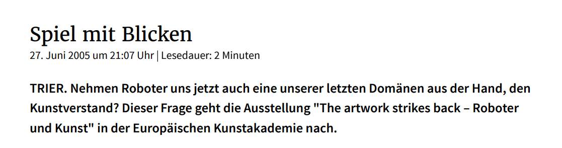 Siehe auch: Kunstausstellung 'The artwork strikes back' in der Europäischen Kunstakademie Trier im Jahre 2005